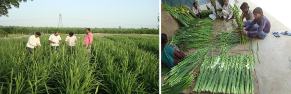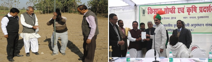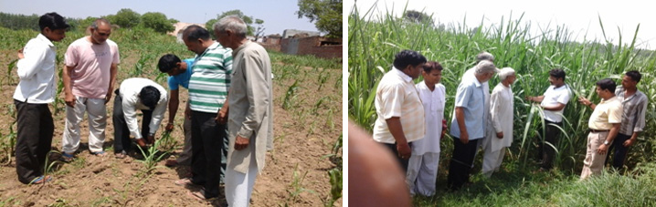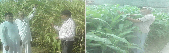 The National Initiative on Climate Resilient Agriculture project was implemented in village- Shahadabbar Block- Budhana district- Muzaffarnagar (U.P) since 2011-12. There was a deficit of green fodder for animal feeding & most of the farmers practiced wheat straw feeding. Wheat straw feeding causes emission of methane/ methanogenesis. Methenogenesis/emission of methane from livestock is major GHG. To minimize the damage from this component KVK, Muzaffarnagar took the initiative & decided to conduct demonstration on green forage. During the kharif 2014-15, KVK conducted 30 demonstrations of sorghum forage (Sorghum vulgare) high yielding variety PC-6 on 10.00 ha. at farmers field .